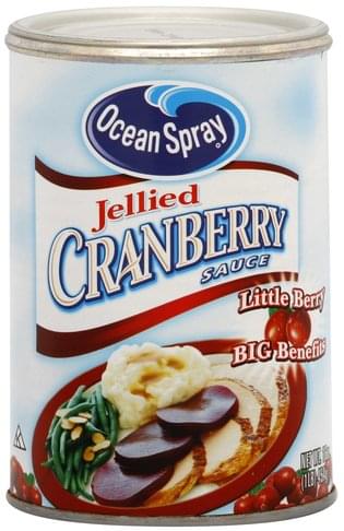 Ocean Spray Jellied Cranberry S - Online Groceries | Shaw's Ocean Spray cranberry sauce has been a tradition at our table for generations, and we hope you enjoy it too! Made in the USA with North American Cranberries. Nutrition Facts. Serving Size: 0.25G21. Servings Per Container: 3. Calories. Amount Per Serving. Ocean Spray Jellied Berry Cranberry Sauce, 8 Ounce Can Ocean Spray Jellied Cranberry Sauce, 6 Cans 14 Ounces Each 84 Ounce Total 119 $24.49 $ 24 . 49 ($0.29/Ounce) Ocean Spray Jellied Cranberry Sauce (Pack of 4) 8 oz Mini Cans 658