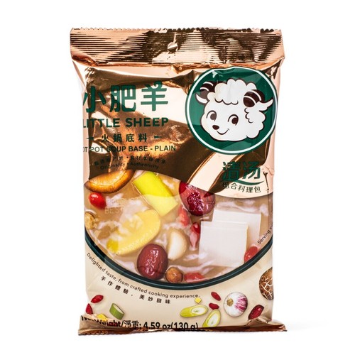 Little Sheep Hot Pot Soup Base Plain Flavor (2 Pack, Total of 260g) Little Sheep Hot Pot Soup... has been added to your Cart Add a gift receipt for easy returns New (3) from $16.95 FREE Shipping on orders over $25.00 shipped by Amazon.